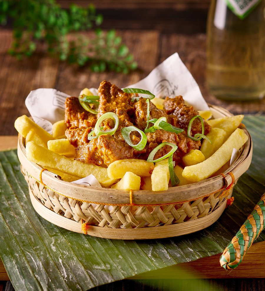 Om een keer wat anders te proberen introduceren we de Frites Rendang. Een heerlijke frites special met kruidige Indonesische Rendang waar je je vingers bij af likt. De combinatie van deze twee smaken wordt wellicht jouw nieuwe Family favoriet!